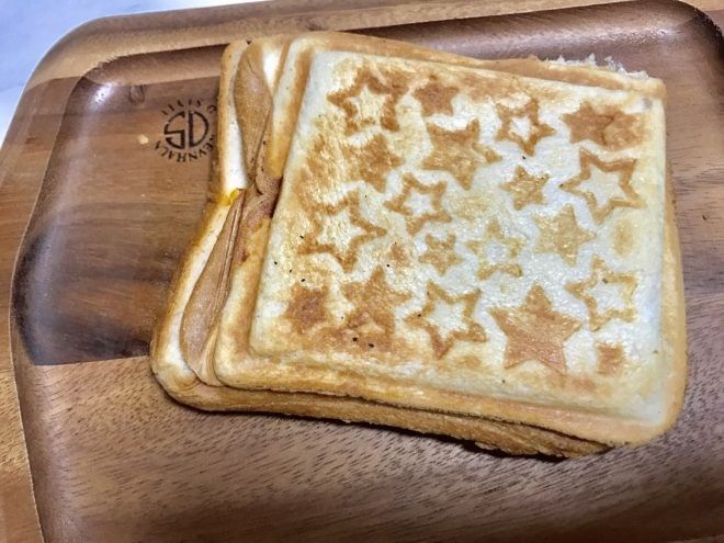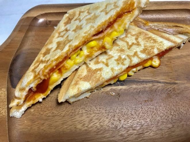 ありすさんからいただいたホットサンドメーカーで、ピザサンドしました\(^-^)/