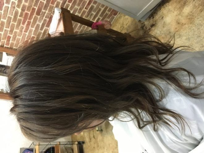 そして伸ばしかけの毛先は白っぽく色が抜けていたので、あえて消さずハイライト風に活かすようにブラウンとラベンダーで薄く色を乗せました♪