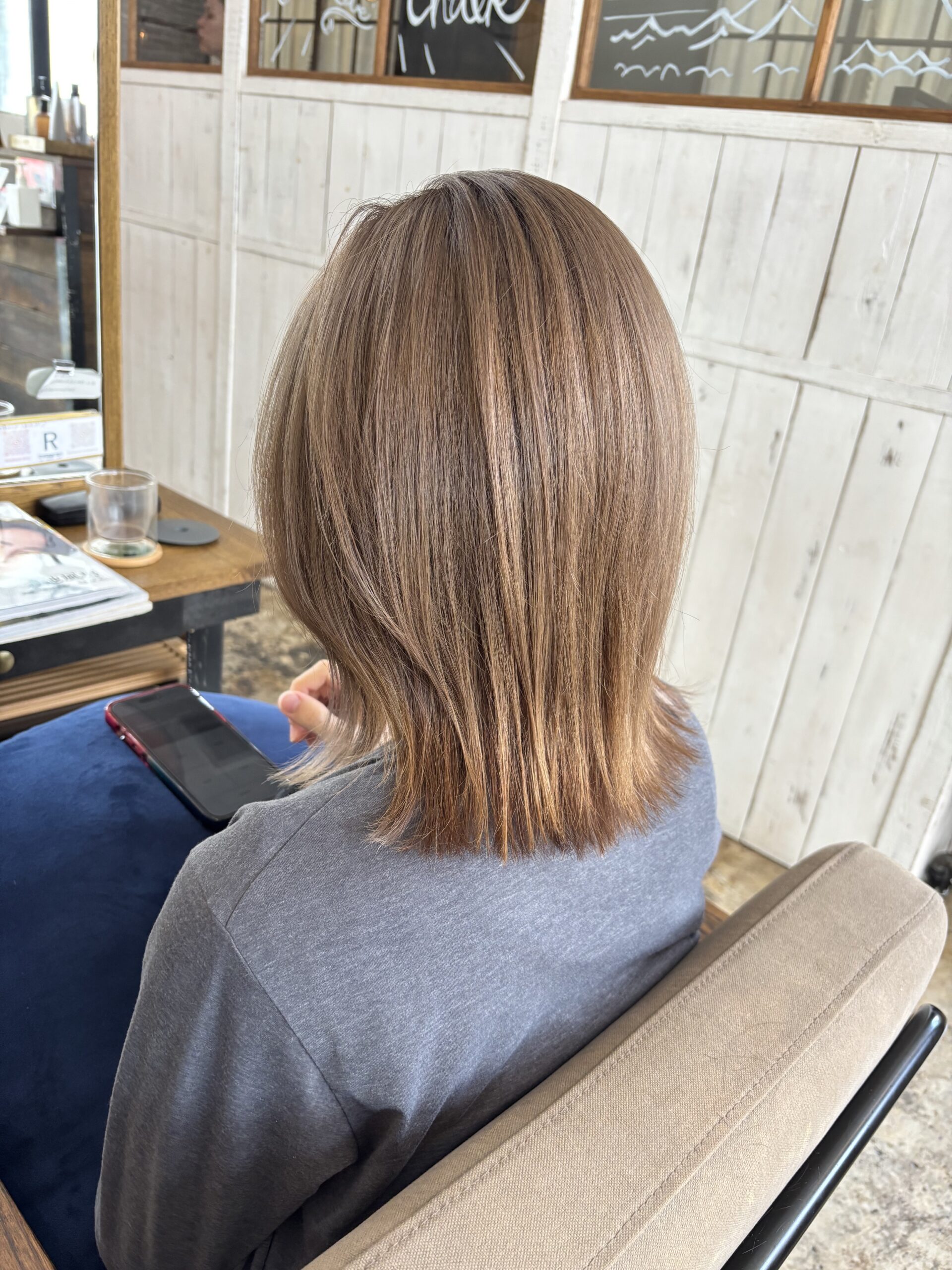 今回はブリーチをしてから、透明感と柔らかさのあるミルクティーベージュに仕上げました!